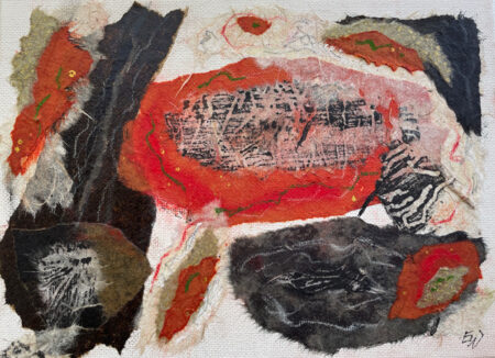 Mina uttryck är främst olja, teckning och särskilt collage: Där bland handgjorda papper, kritor, akvarell, klister och kol hittar jag bilder som jag inte trodde fanns!